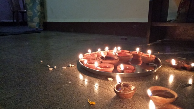 Light every diyas and placing at every door, windows and into the corridor. When these diyas placed the Laxmi enters the house—This is what we Indian thinks, the crore of people follows this holy practice traditionally. This was one of the best Rangoli of the day, it was looking so beautiful at night and quickly changed me and my thoughts.